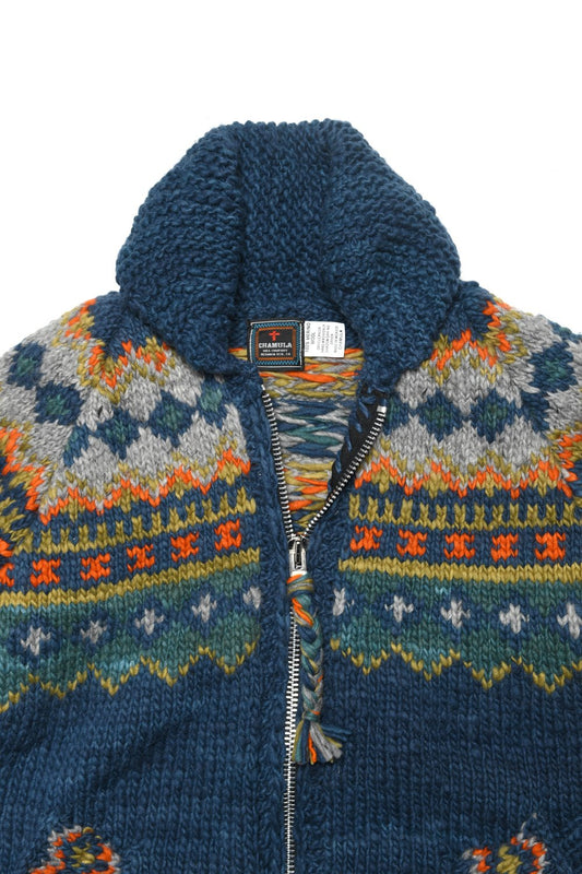 Fair Isle #3 Zipper Cardigan - Dk. real Indigo
